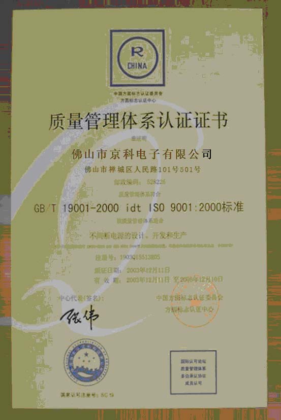 質(zhì)量管理體系認證證書