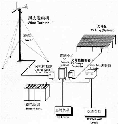 風(fēng)光互補(bǔ)發(fā)電原理圖如下: